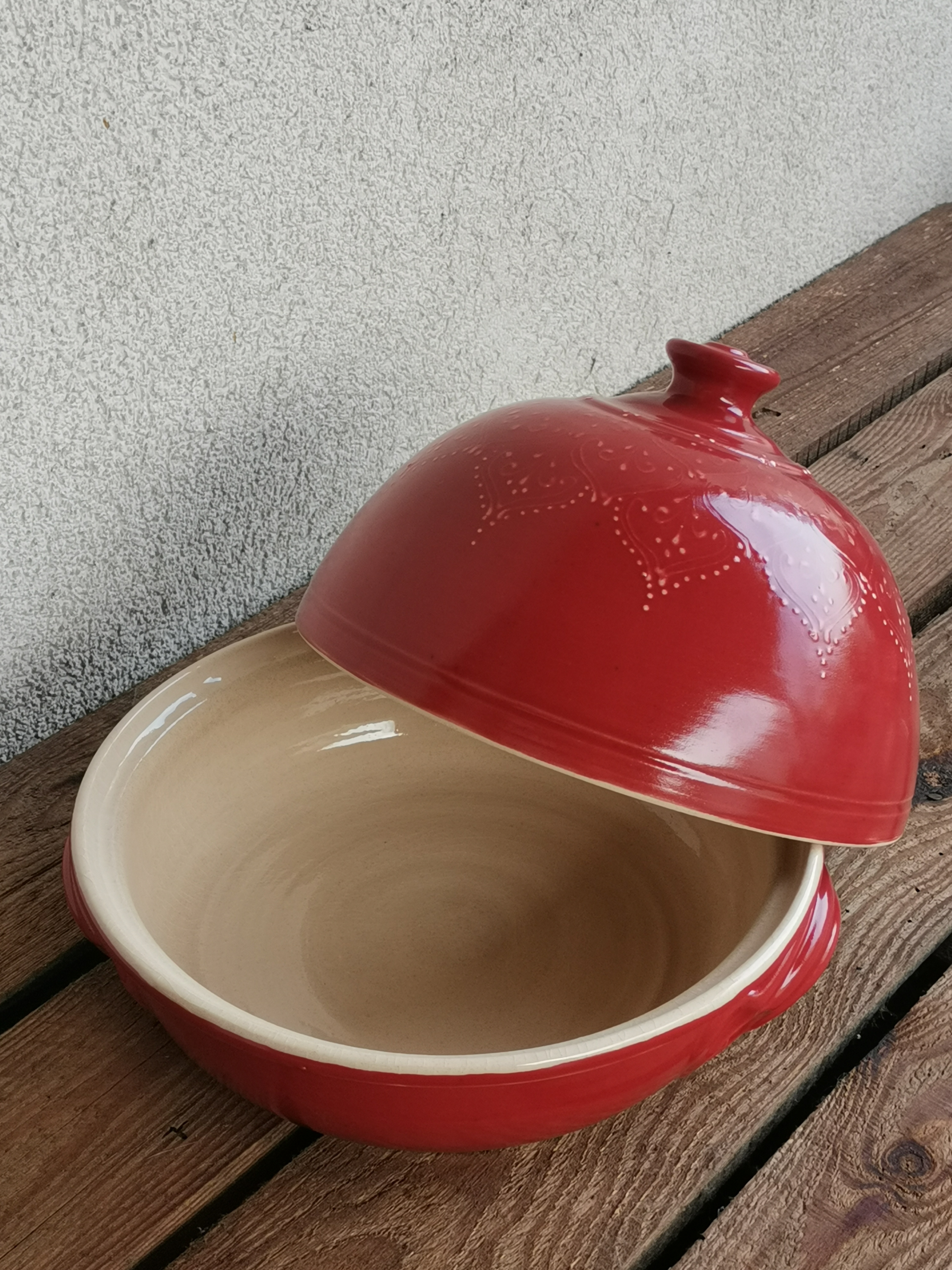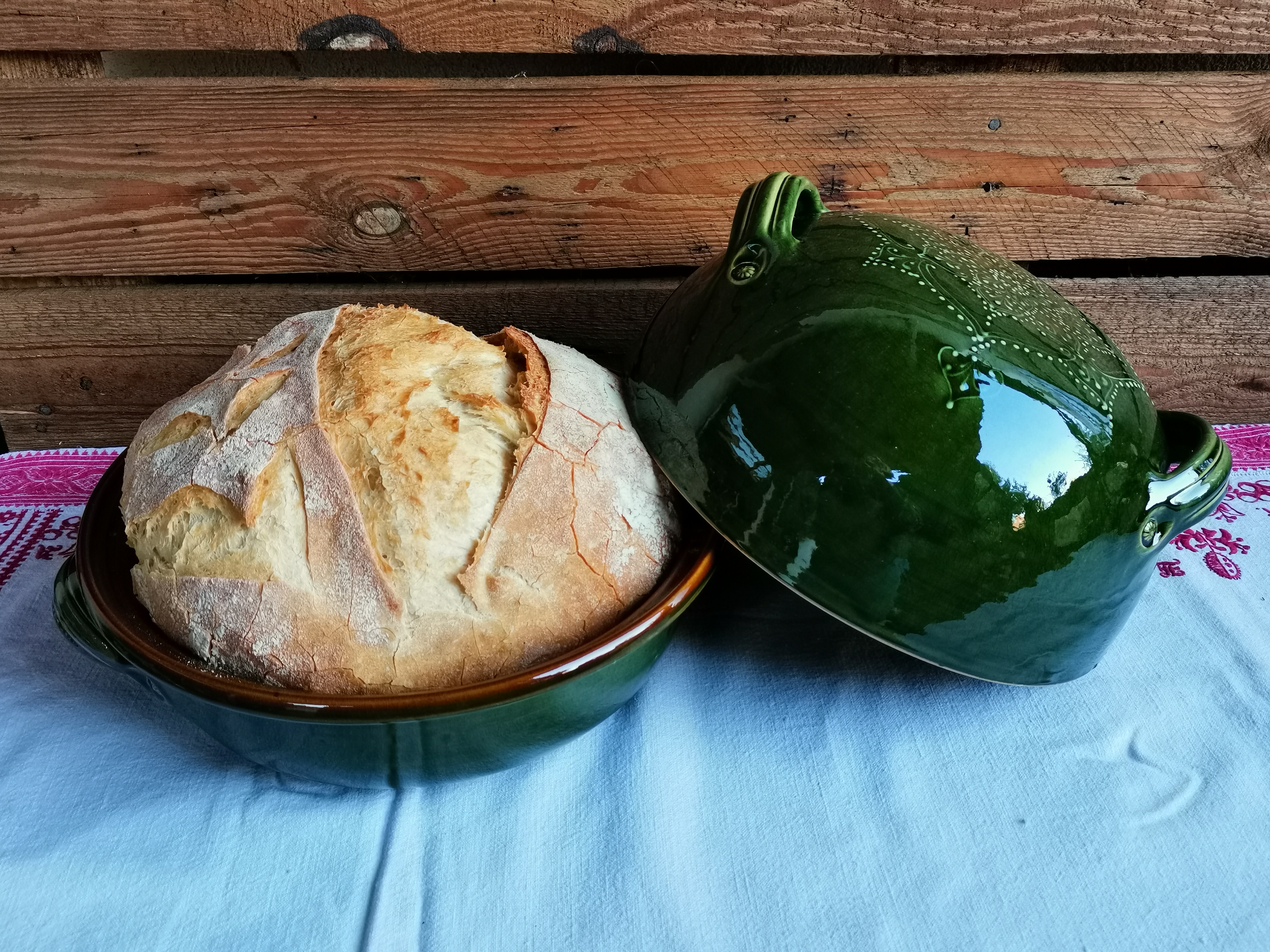 Kenyérsütőink kézzel korongozott kerek fedeles edények, sütőben és kemencében használhatóak, akár élesztős, akár kovászos kenyérhez. A kerek sütőformák 26-28-30-32 cm átmérővel készülnek, 26.000-28.000-30.000-32.000 Ft-os áron. A legkisebb kenyérsütőben egy kiló alatti,kb. 0.5-0.8 kilogrammos kenyér készíthető. A legnagyobban pedig a másfél-két kilós kenyér.