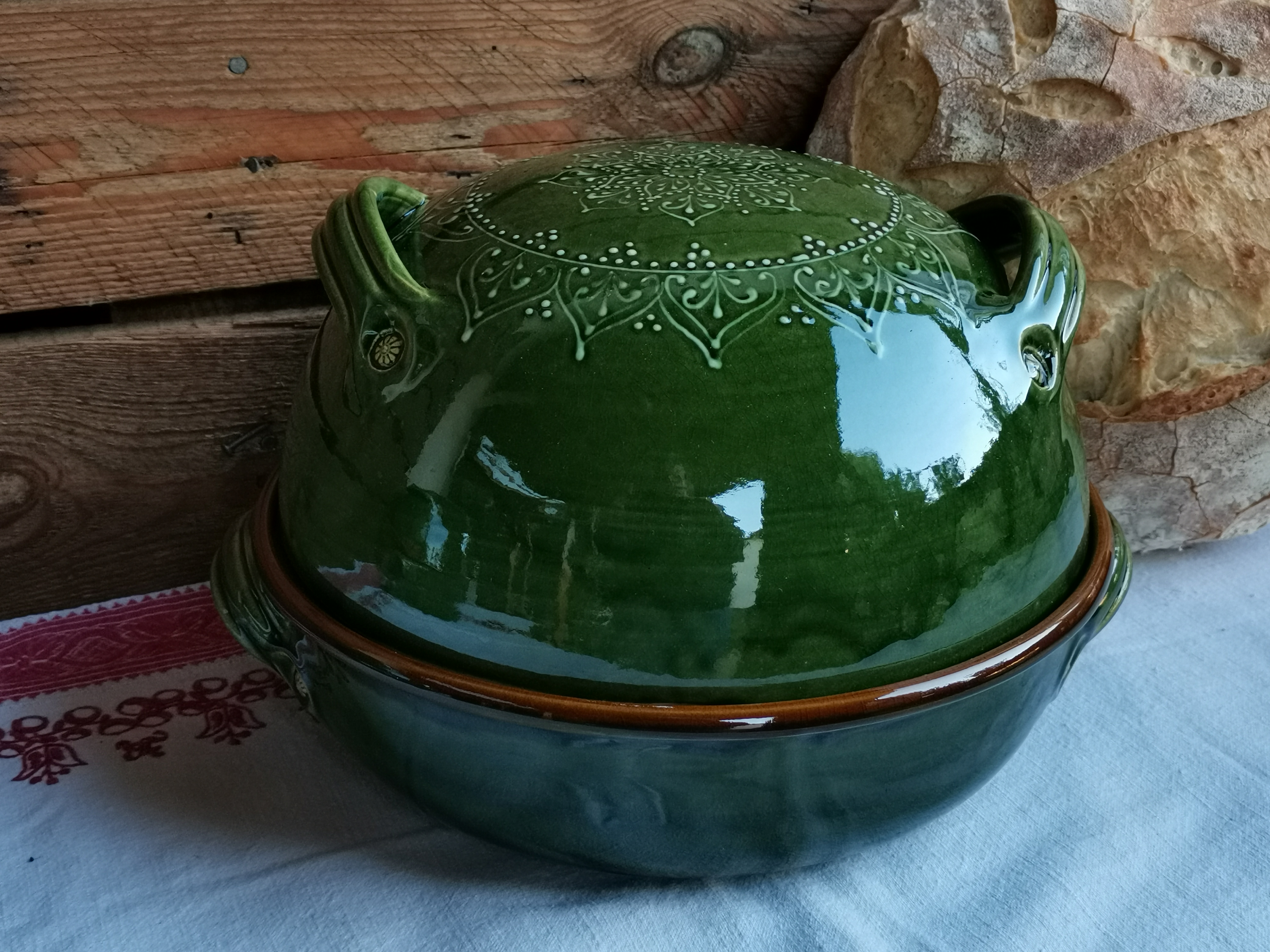 A fedeles cipó-vagy kalácsütő- edény egy méretben készül, hossza 35 cm, magassága 17cm. Természetesen alkalmas kenyér sütésére is, nem csak kalács, vagy cipó készítésére. Kb egy kilós kenyér készíthető benne, ára 27.000 Ft. Zöld és kék színben is készülnek, az aktuálisan elérhető színekről érdeklődjön! |